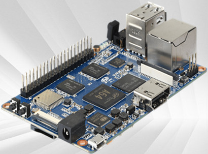 Banana Pi BPI-M64 is a 64-bit quad-core mini single board computer. It features 2GB of RAM and 8GB eMMC. It also has onboard WiFi and BT. On the ports side, the BPI-M64 has 2 USB A 2.0 ports, 1 USB OTG port, 1 HDMI port, 1 audio jack, and lastly a DC power port. The processor is pin-to-pin comptialbe with R18, so it comes with two versions:M64 and M64-R18.