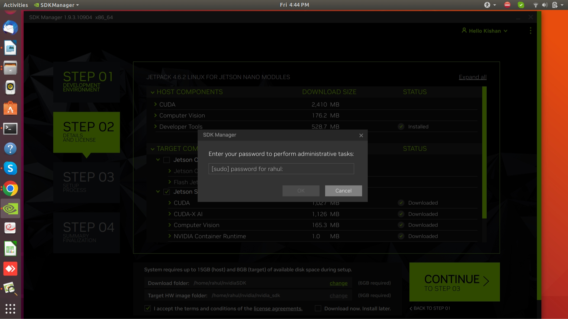 Note: If you want to learn more about how to use NVIDIA SDK-manager, you can use the official guide from NVIDIA from here.