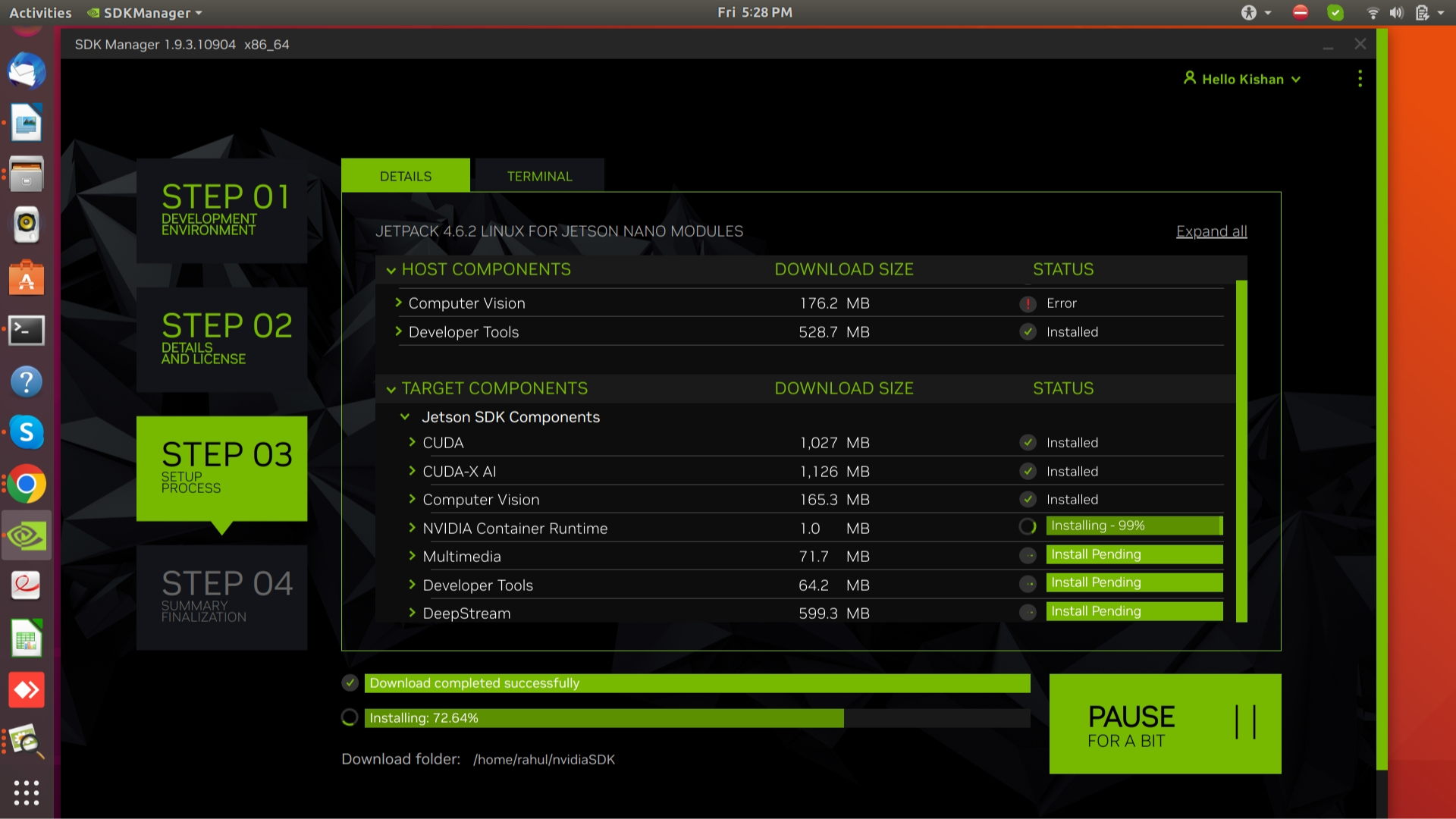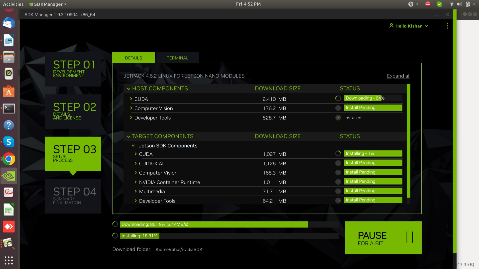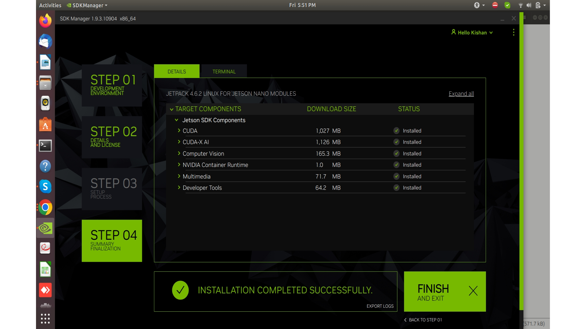 Now Jetson Nano is ready to install further NVIDIA SDK components. Download the SDK Manager for host Ubuntu 18.04 and install it on host Ubuntu.