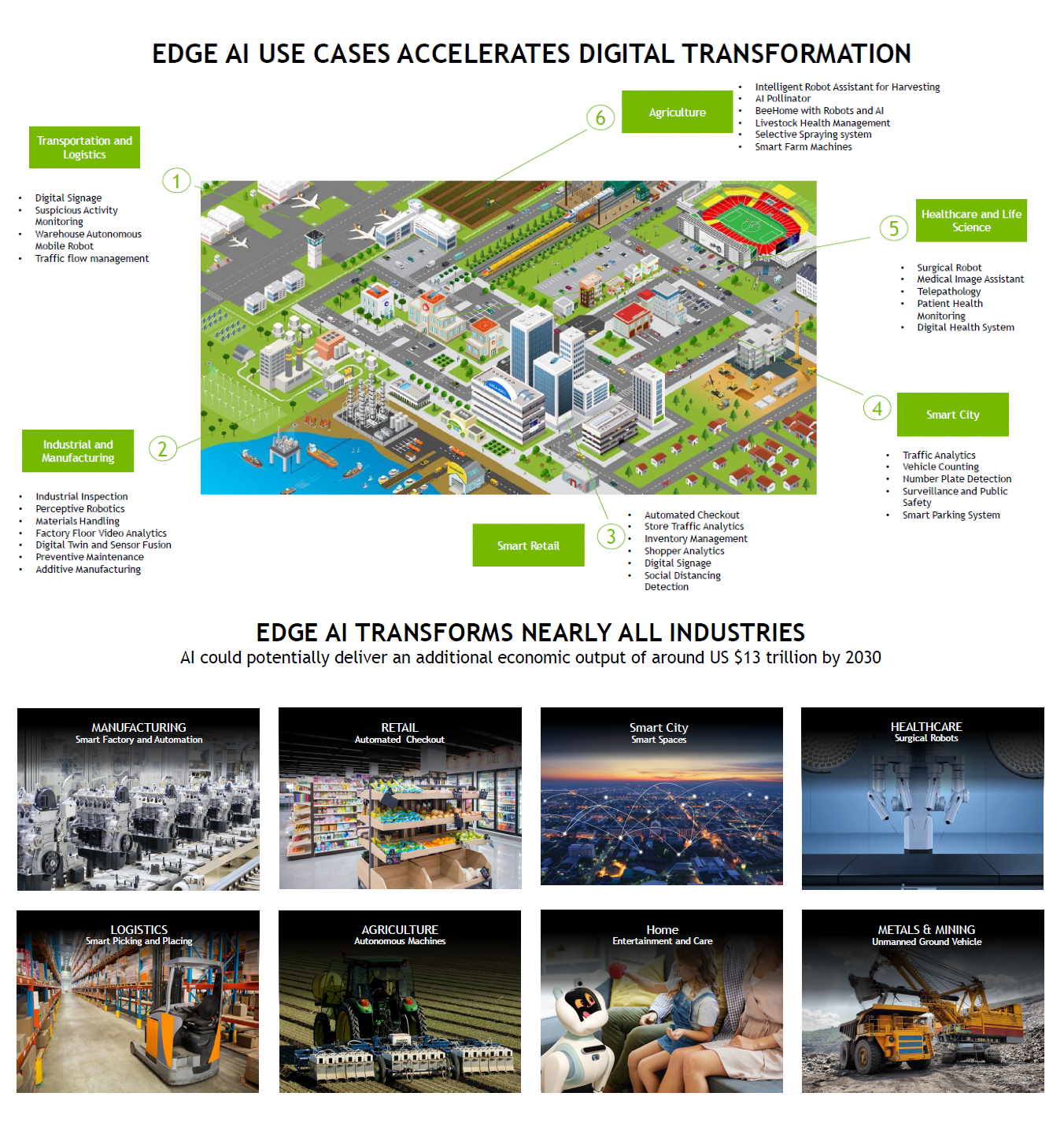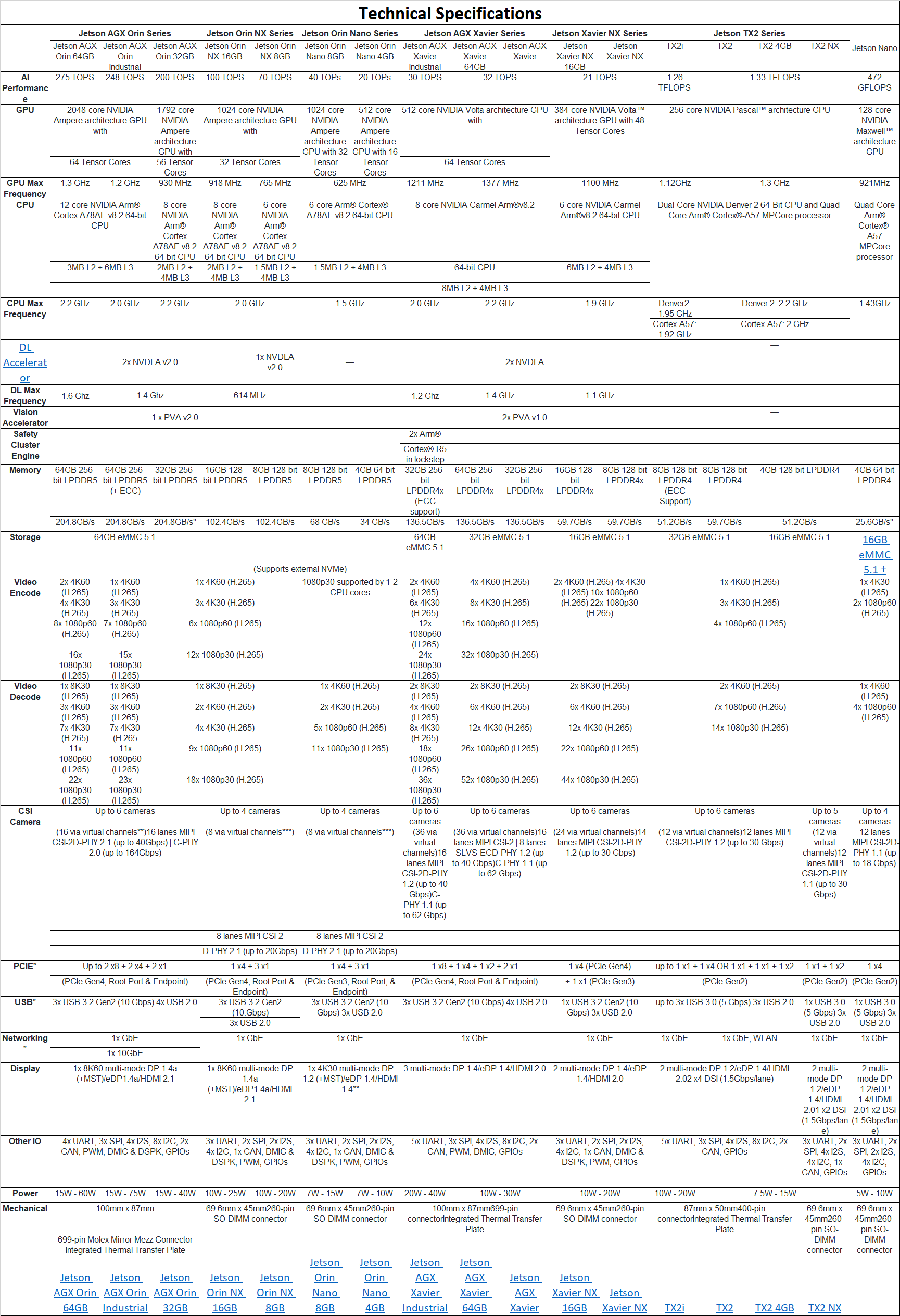 NVIDIA® Jetson™ brings accelerated AI performance to the Edge in a power-efficient and compact form factor. Together with NVIDIA JetPack™ SDK, these Jetson modules open the door for you to develop and deploy innovative products across all industries.The Jetson family of modules all use the same NVIDIA CUDA-X™ software, and support cloud-native technologies like containerization and orchestration to build, deploy, and manage AI at the edge.