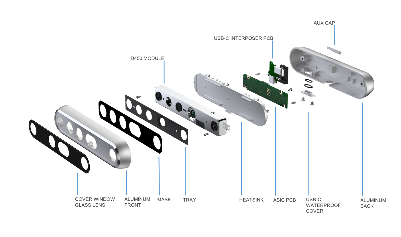 | Major Components | Camera module: | Intel RealSense Module D450 |