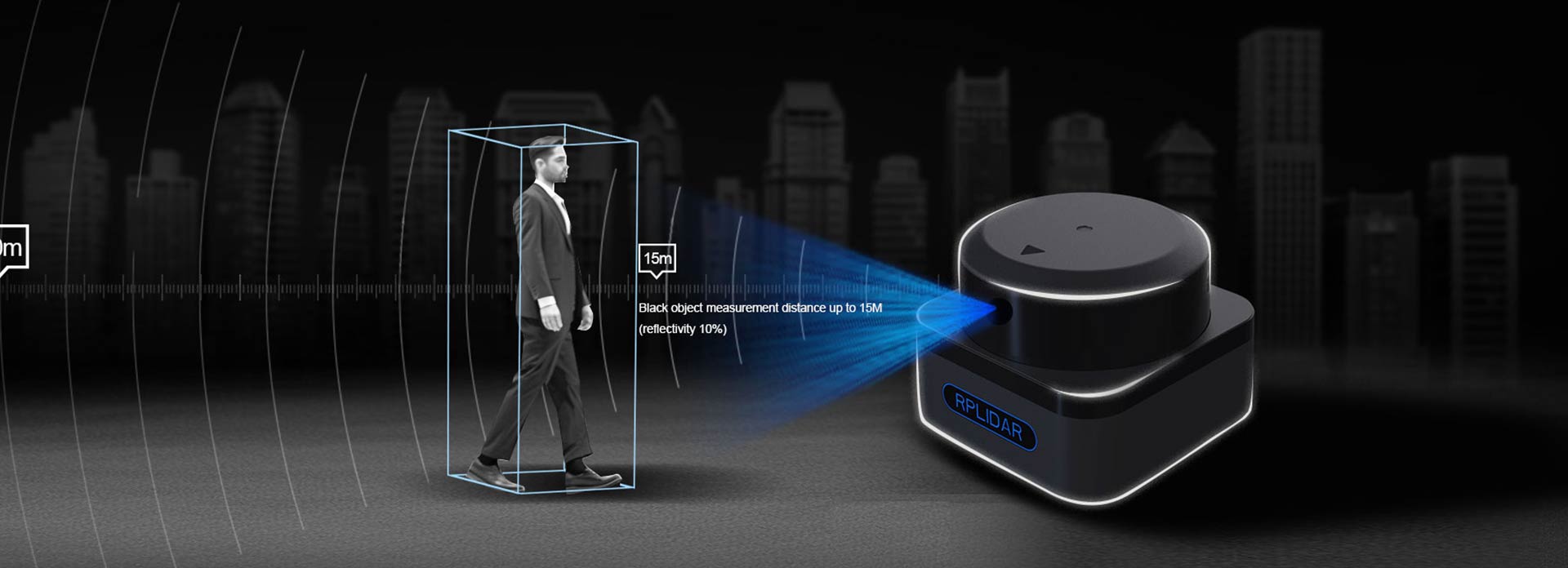 RPLIDAR S3 rotates the ranging core clockwise with the motor drive to achieve a 360° scan of the surroundingsective coating objects. It can measure up to a distance of 15 meters with a 10% reflectivity.