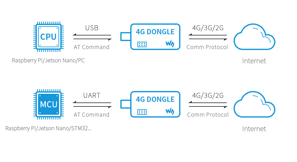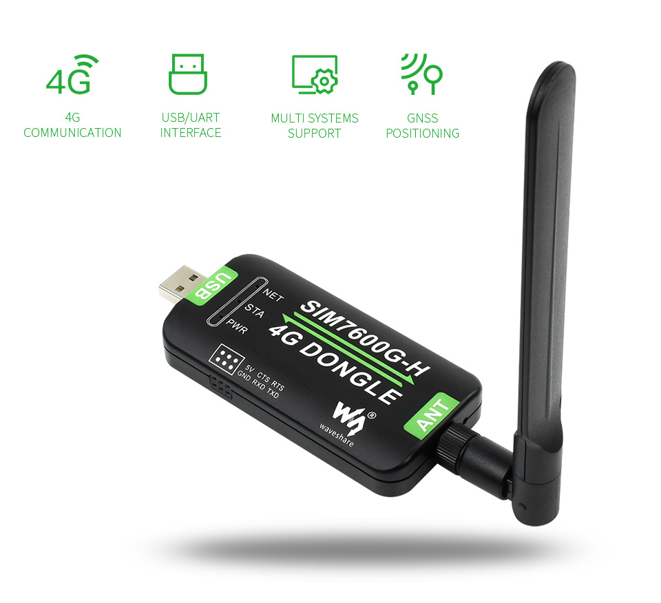 This is a global band industrial grade 4G dongle, which features up to 150Mbps downlink rate and 50Mbps uplink rate, supports operating systems including Windows/Linux. By simply connecting it to laptop, PC, Raspberry Pi, industrial computer, or other IoT host device, it is easy to use 4G network connection on the go.