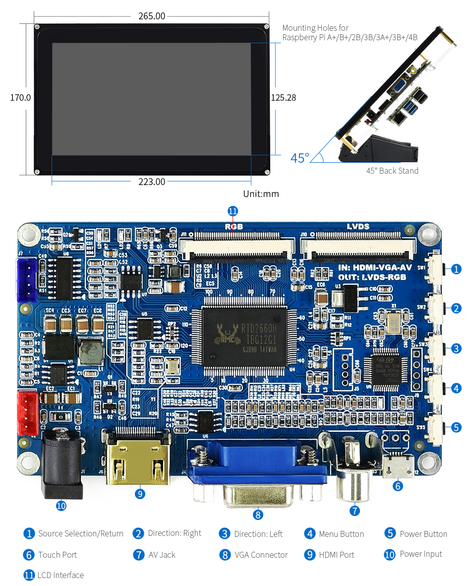 10.1inch Capacitive Touch Screen LCD (H) With Case, 1024×600, HDMI, Various Systems & Devices Support, Including Raspberry Pi, Jetson Nano, PC...(SKU: 11557)