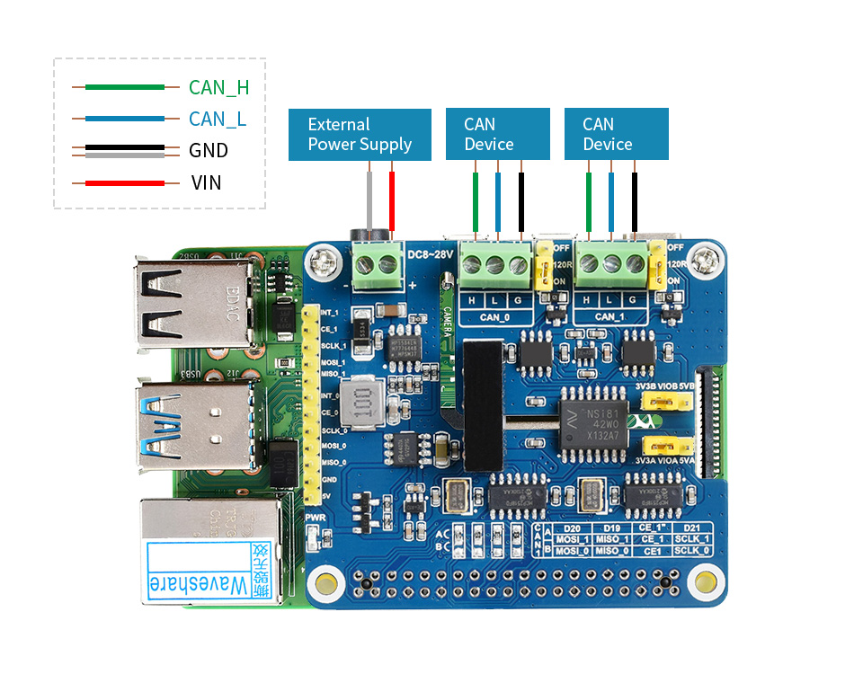 The 2-CH CAN FD HAT is a 2-Channel CAN bus expansion HAT designed for Raspberry Pi, supports CAN FD (CAN with Flexible Data-Rate). It will enable CAN bus for your Raspberry Pi, not only the original CAN 2.0 protocol, but also the CAN FD extension, with higher data throughput.