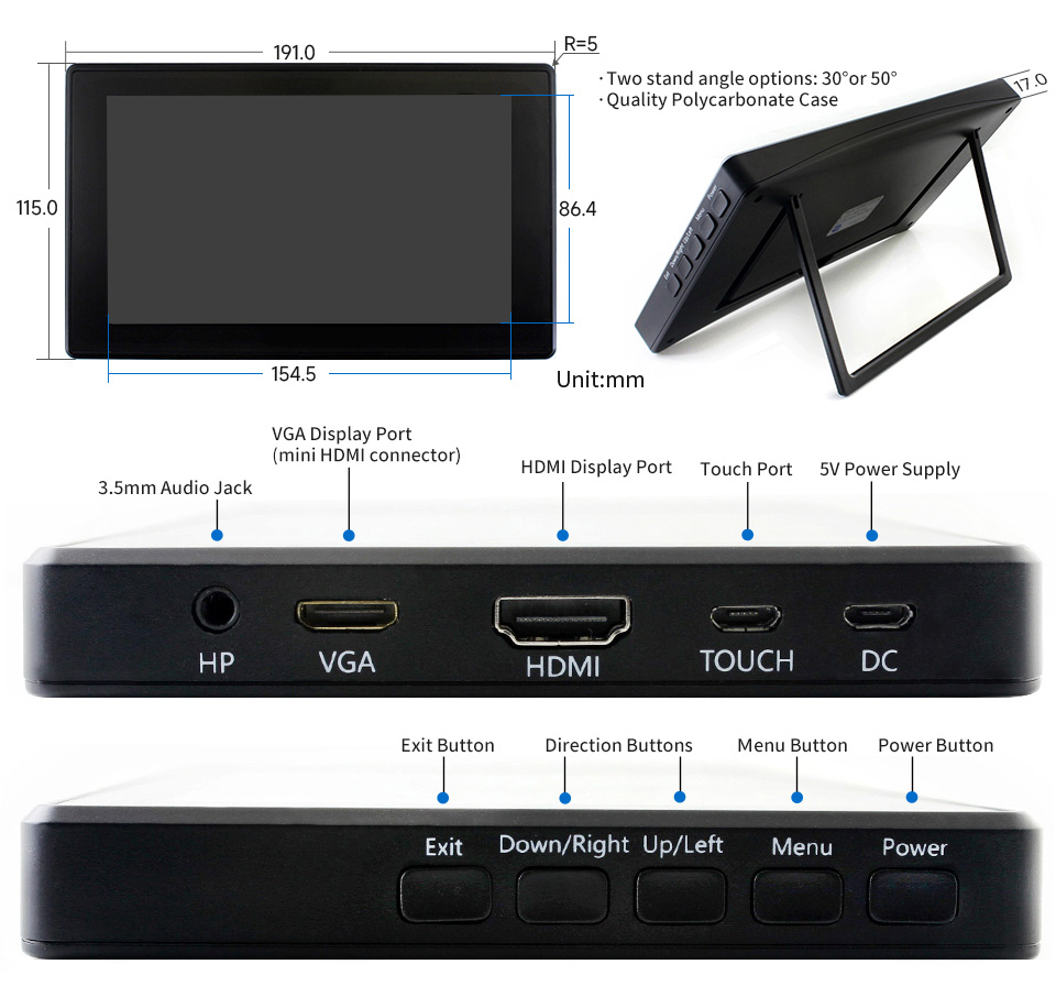 | Model | Waveshare 7inch HDMI LCD (H) with case (SKU:13857) |