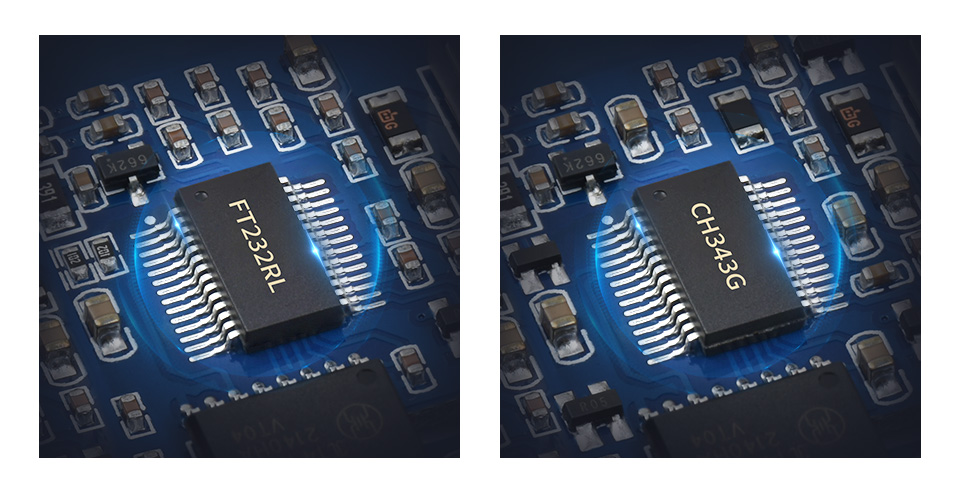 | Baud rate | FT232RL: 300 bps ~ 2 Mbps CH343G: up to 2 Mbps (not full band) | ||||