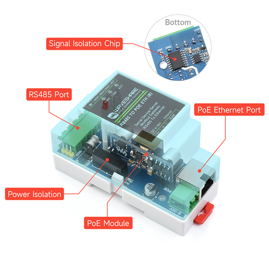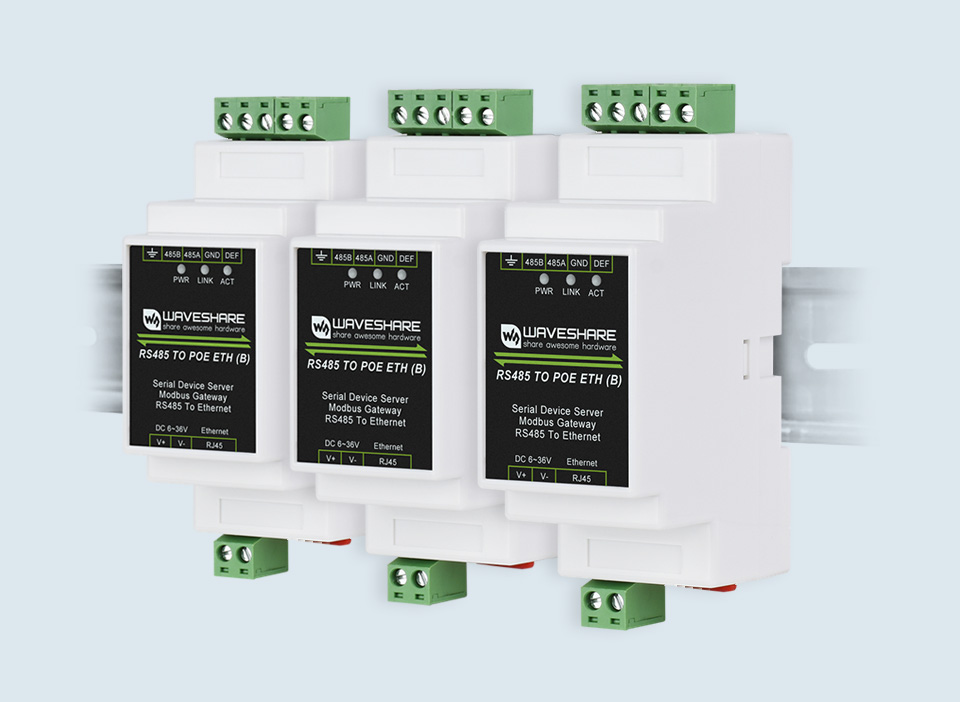 The RS485 TO POE ETH (B) is the hardware upgrade version, supports PoE Ethernet port power supply, with power and signal isolation protection, which is safer for industrial applications. All three versions have the same software functionality.