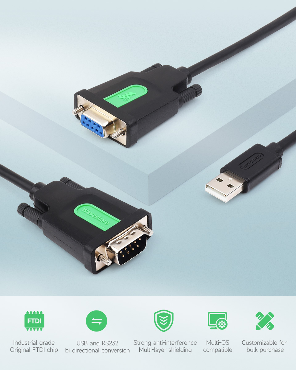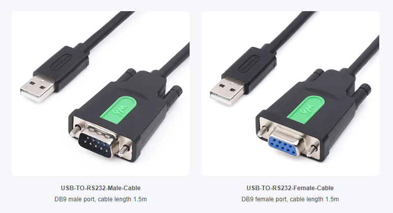 | Device Interface | USB-TO-RS232-Male-Cable: RS232 DB9 male port USB-TO-RS232-Female-Cable: RS232 DB9 female port |