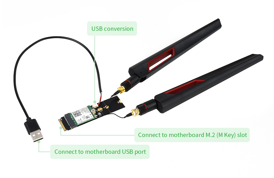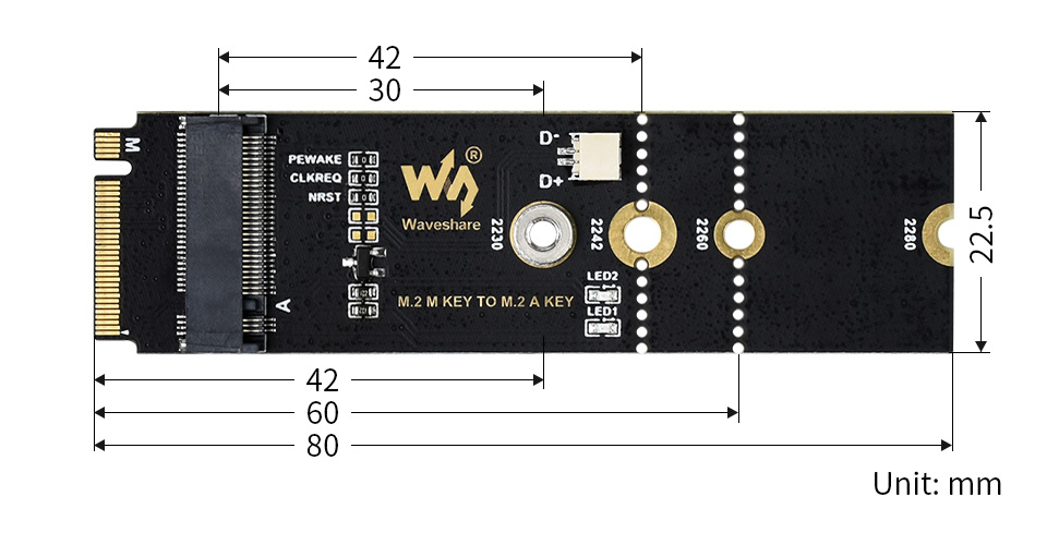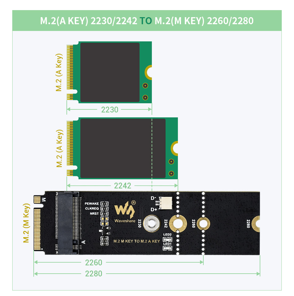 M.2 M KEY to A KEY adapter, only supports devices with PCIE channel, supports USB conversion