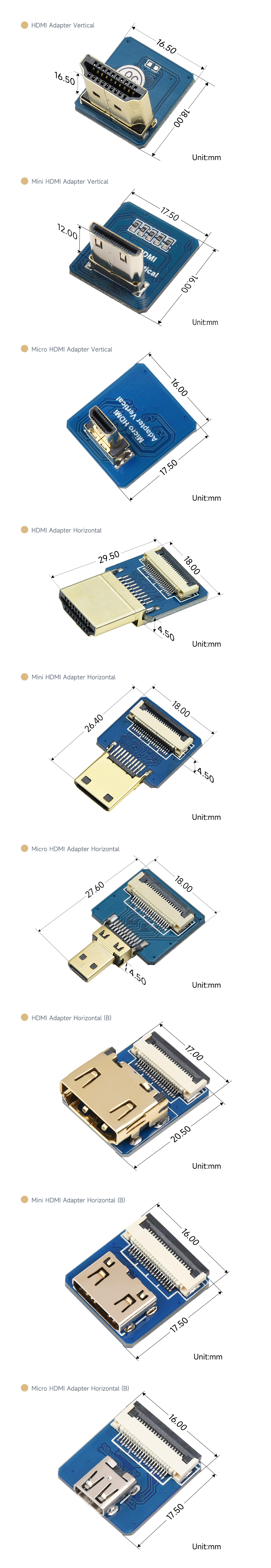 | Micro HDMI Vertical | Micro HDMI Male Plug To Female Connector | 17.5 × 16.0 |