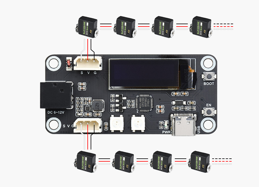 up to 17kg.cm torque on 8.4V voltage, suitable for building quadruped robots, hexapod walkers, robotic arms and other robotic projects requiring multiple servos